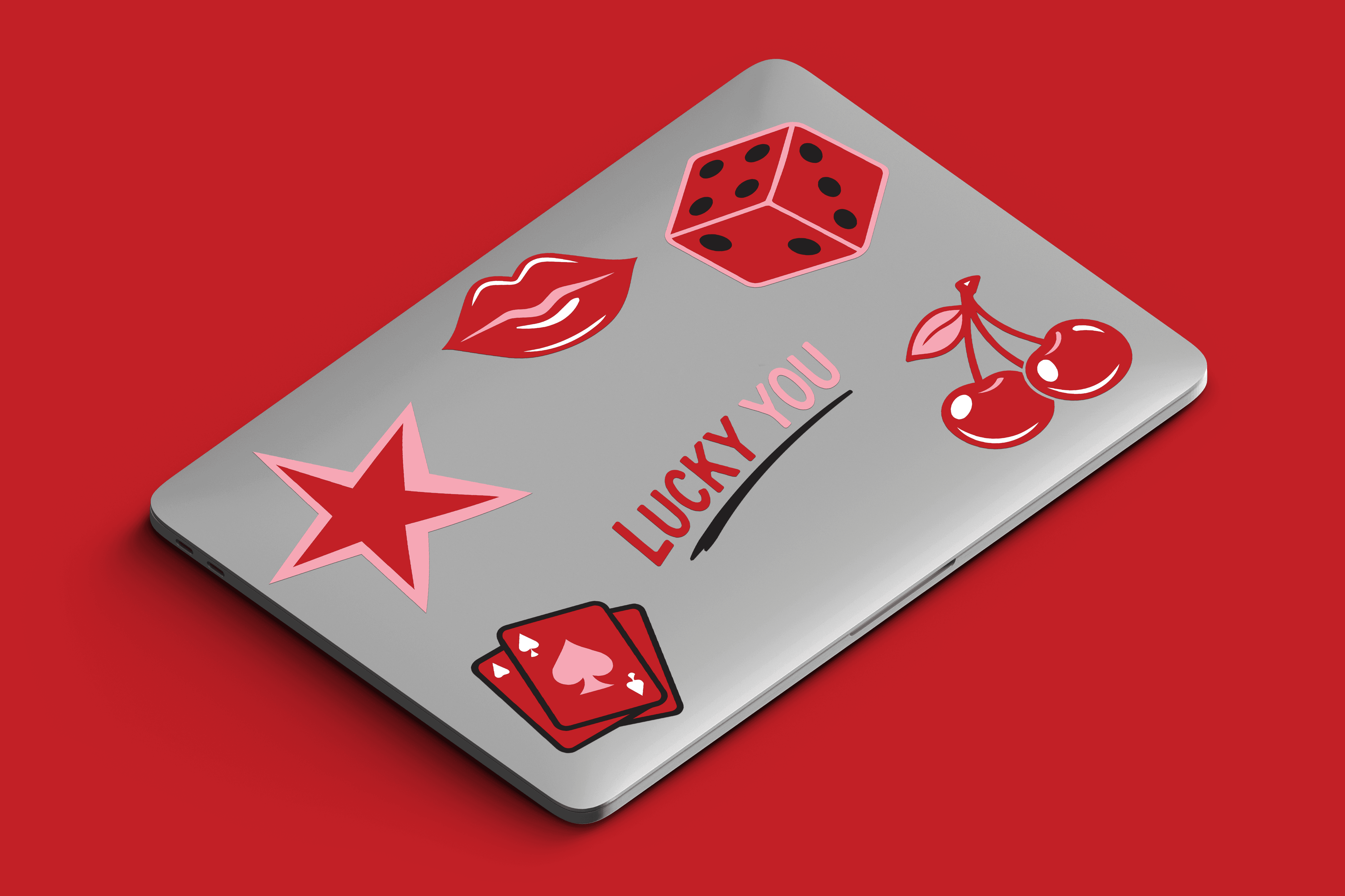 Lucky Club Social is a fictional brand identity for a nightlife space. The “Lucky You” sticker set showcases cherries, lips, dice , a star and a sticker that says “Lucky you”. Even though a white border is typically used I wanted to leave it out and have the stickers completely blend in with the space and become one with their environment.